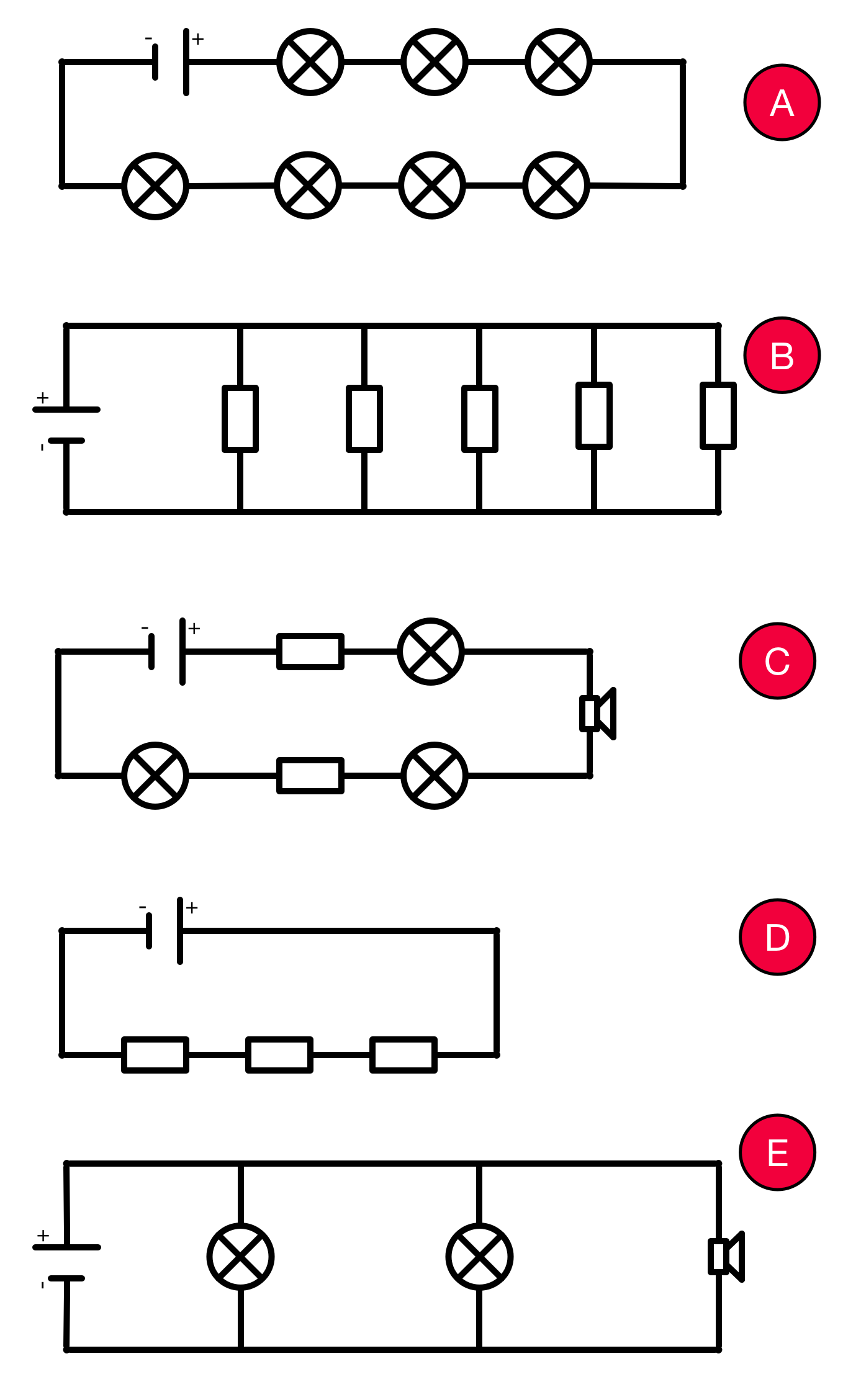 Geef bij deze schakelingen aan of het serie of parallel schakelingen zijn.