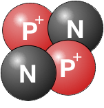 Geef de samenstelling van een helium atoom, in aantal protonen, neutronen en elektronen.
