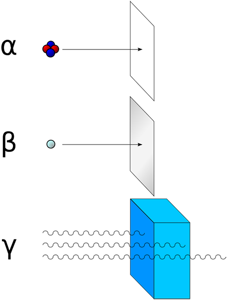 Er zijn 3 soorten straling uit de kern van een atoom. Deze soorten straling hebben verschillende eigenschappen.