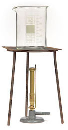 Met de 3-poot kun je dingen boven de brander plaatsen. Je kunt er een gaasje of een driehoek opleggen. Daarop kun je dan weer een indampschaaltje of een bekerglas zetten.