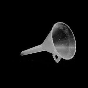 Als je een stof in een kleine opening moet doen heb je een trechter nodig. Bijvoorbeeld als je stoffen met een spatel in een reageerbuisje doet. Je kunt de trechter ook gebruiken om een filter in te plaatsen.