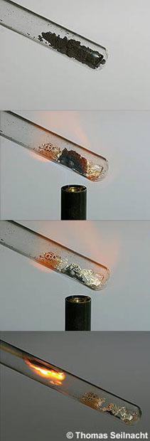 Magnesium (s) + Zuurstof (g) -> Magnesiumoxide (s)