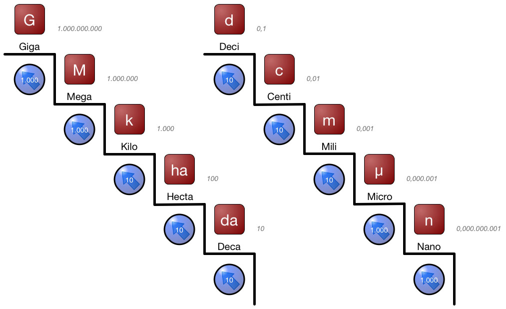 We maken ook gebruik van vermenigvuldigingsfactoren. Dit zijn voorvoegsels voor de symbolen van de eenheden.