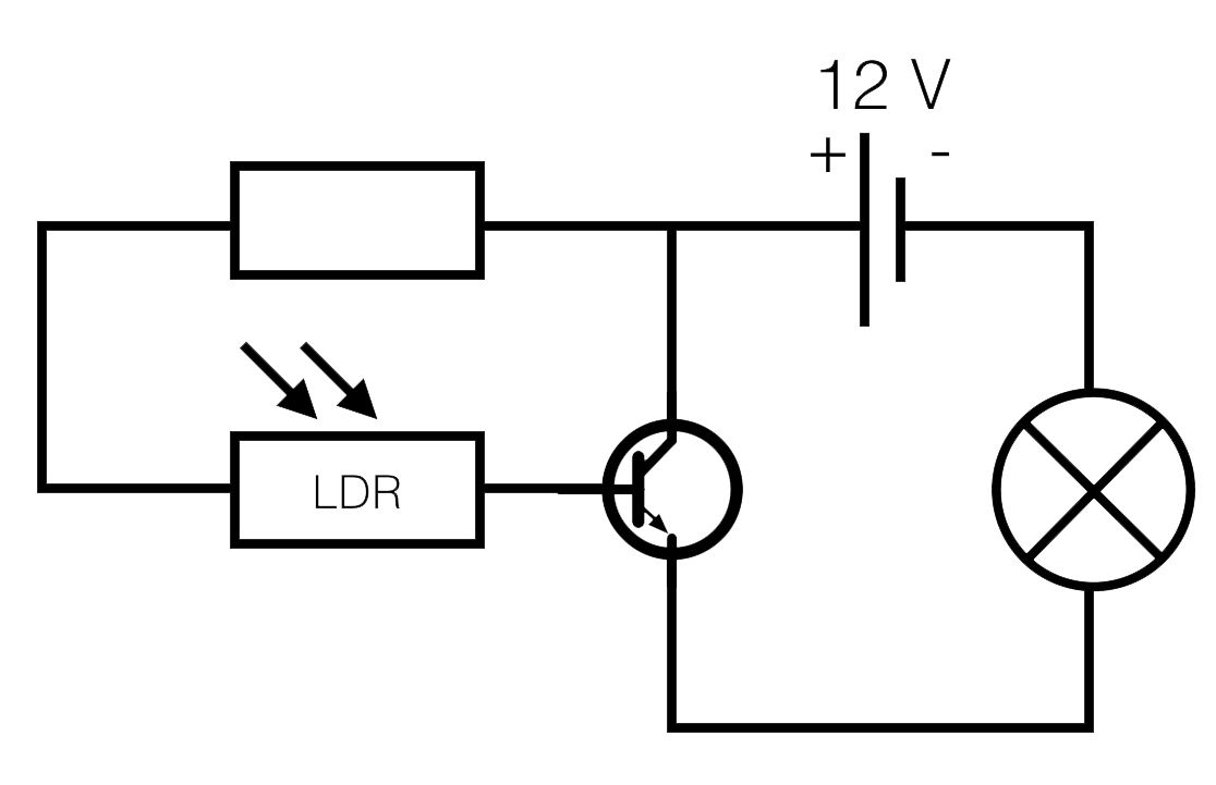 Wanneer er licht op de LDR komt neemt de weerstand toeaf. Er loopt dan welgeen stroom door de transistor.
