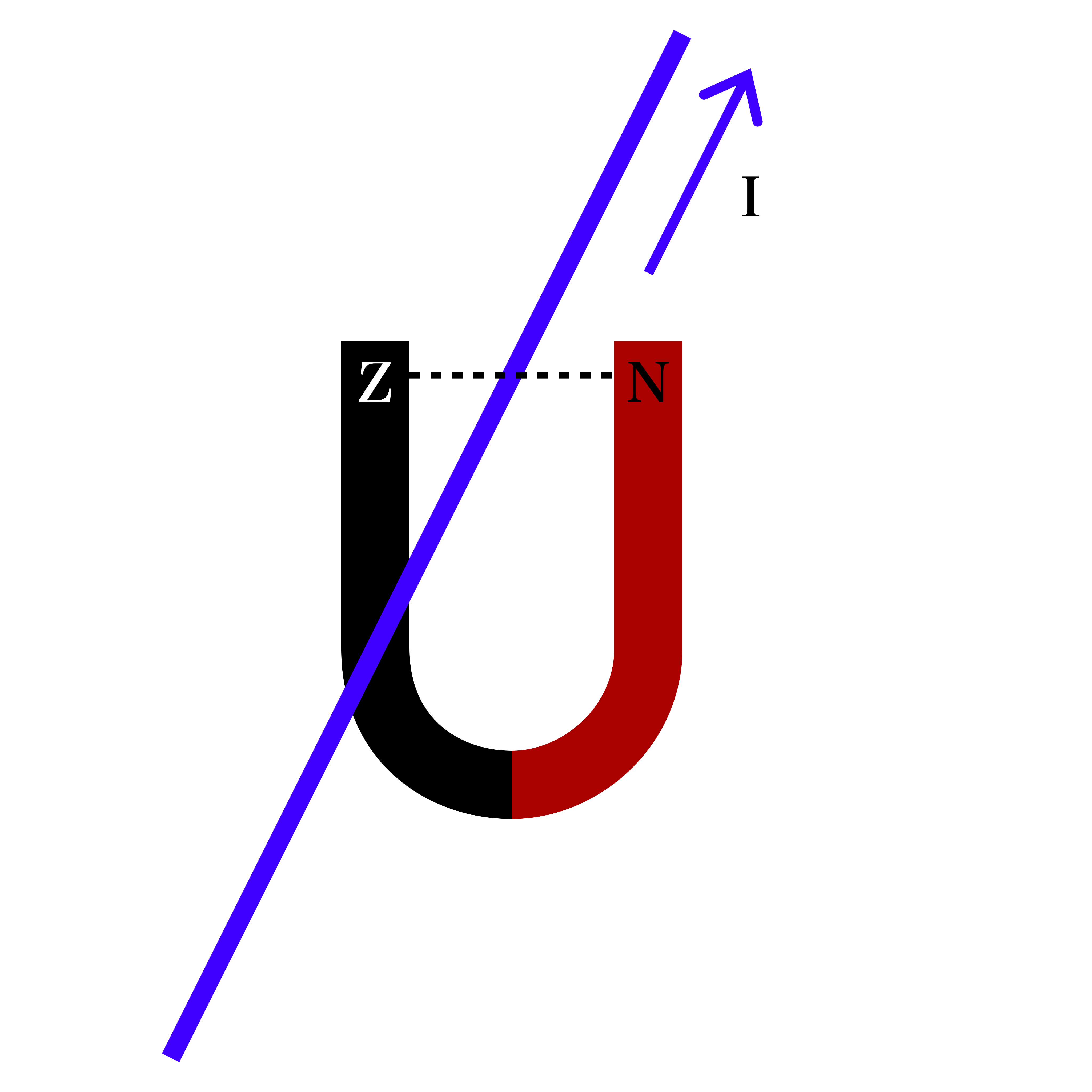 Een elektrische stroom omhoog veroorzaakt een [[rechtsom//linksom]] draaiend magneetveld.